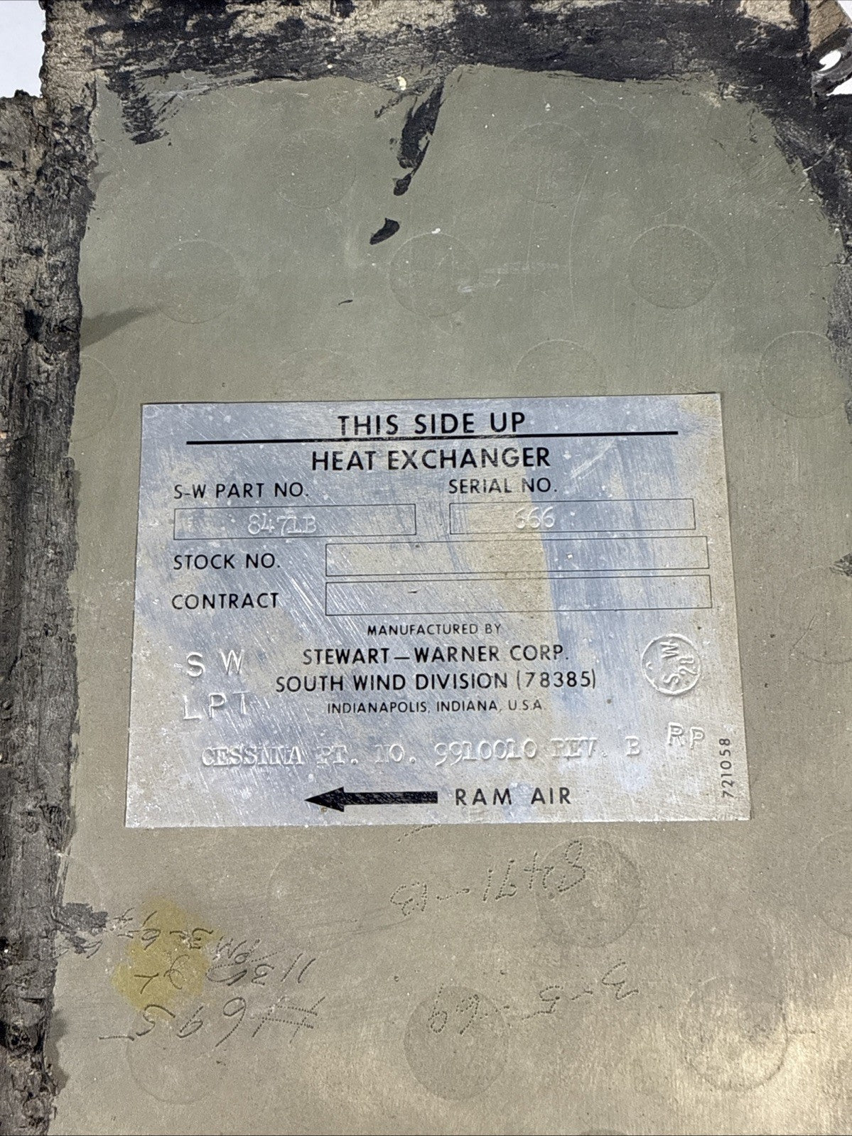 9910010-1 Cessna 421 Ram Air Heat Exchanger 8471BRubber seal torn Plastic has some cracks and damage LOOK Carefully at Pictures