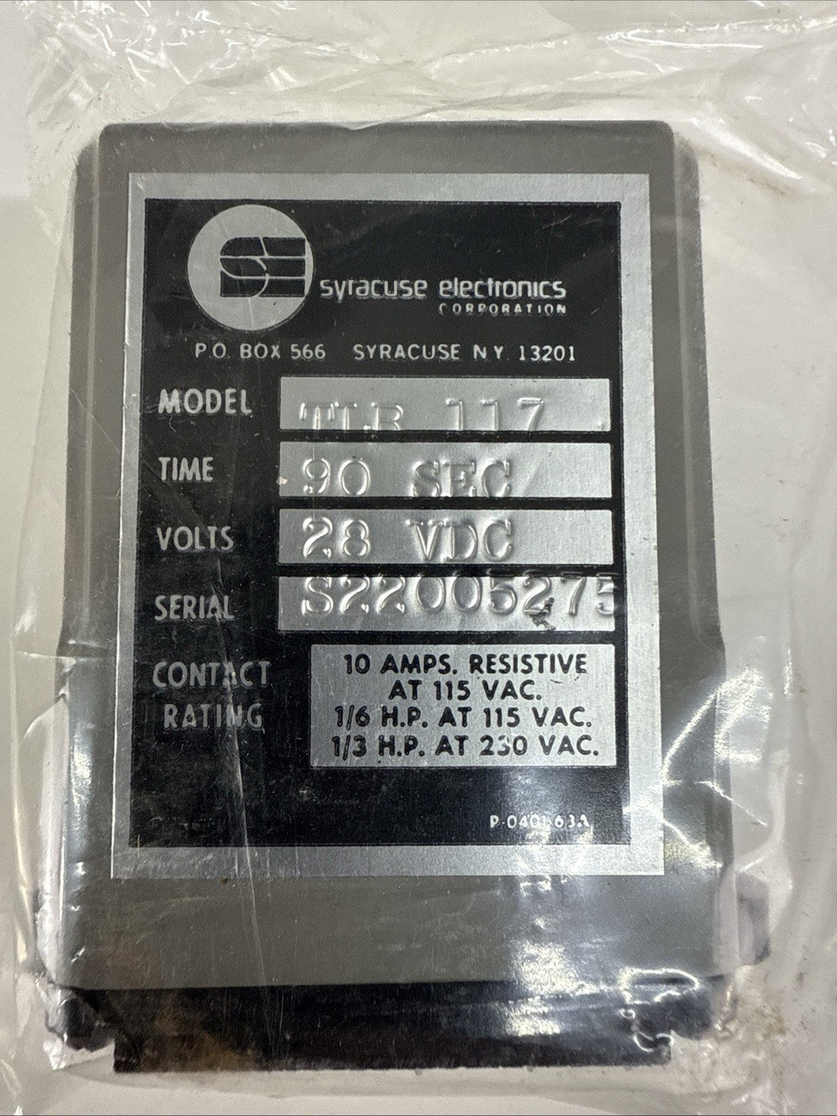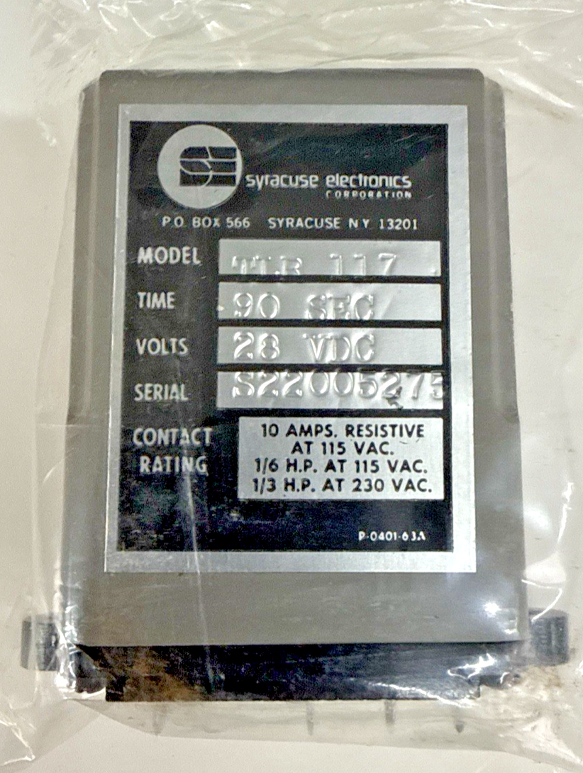 TLR-117, TLR-117-90, Aircraft 28VDC / 90 sec Timer Relay NEW